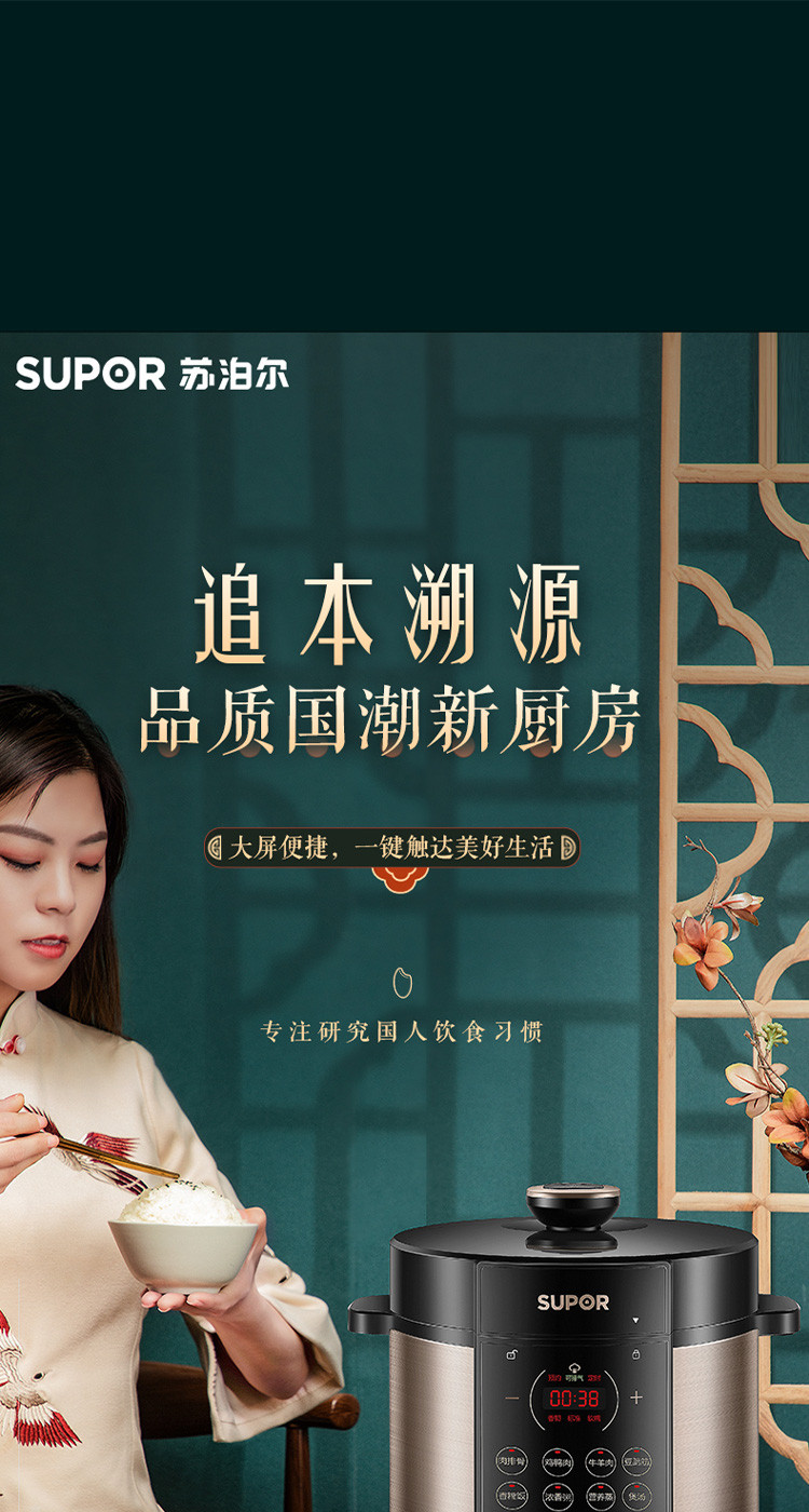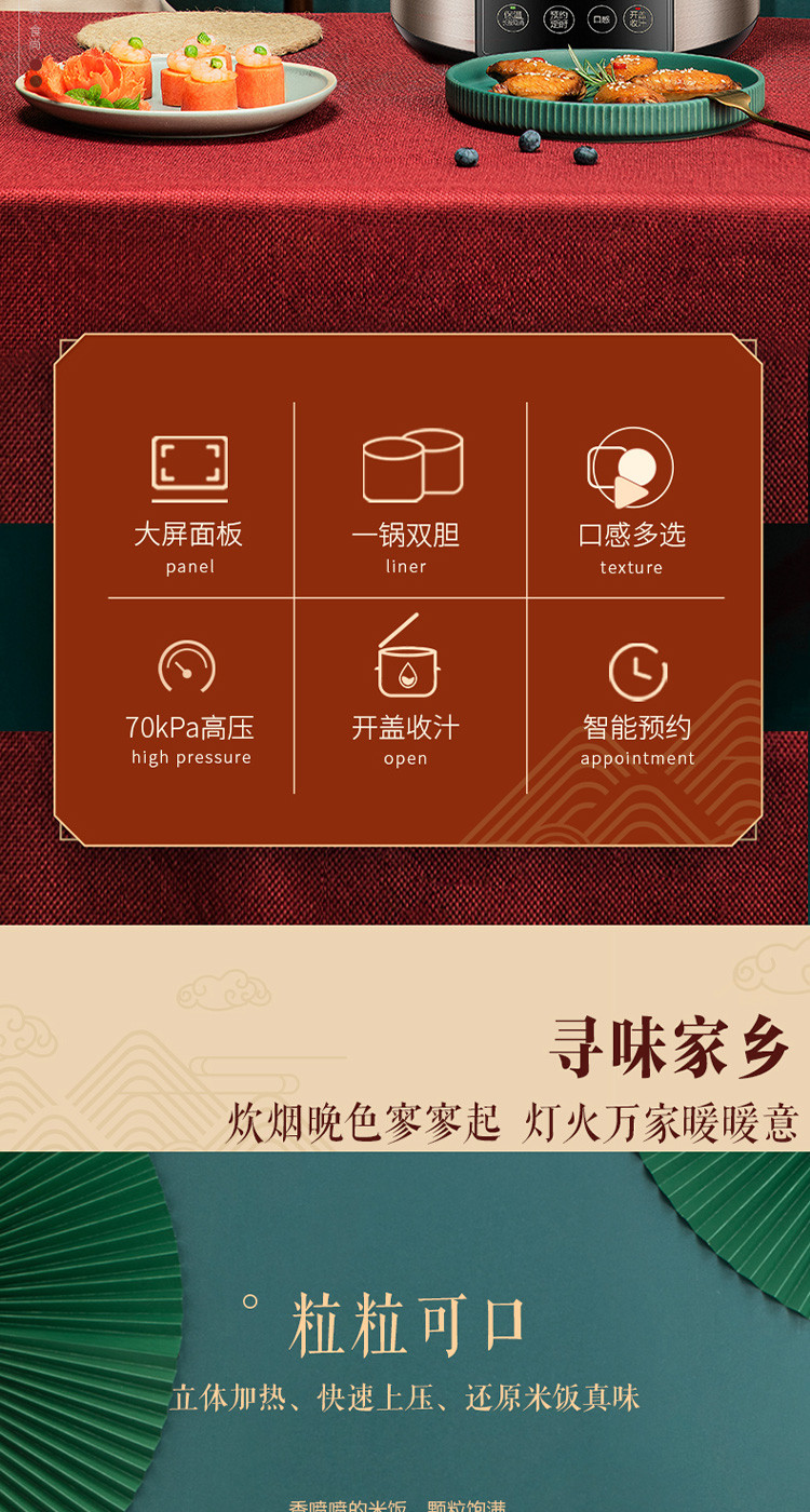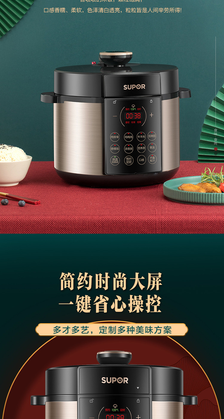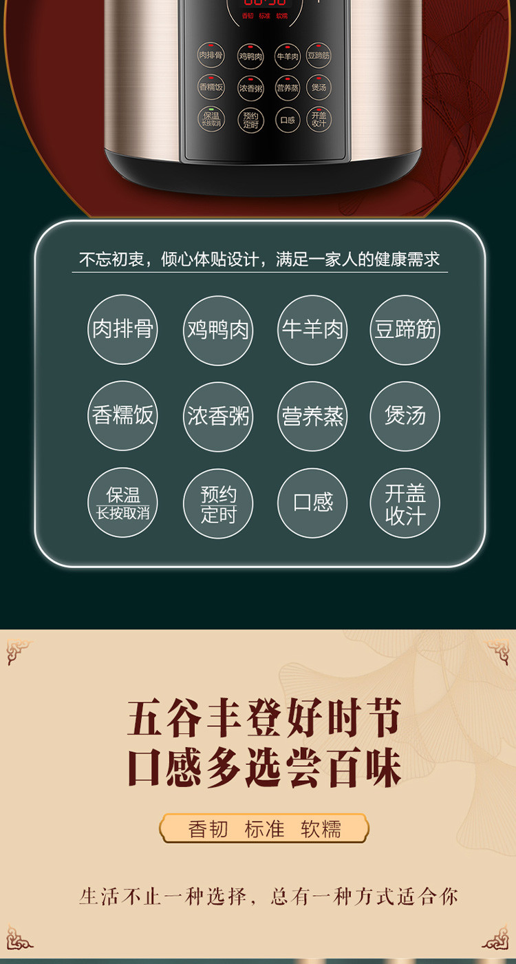 电压力锅5L全自动智能预约家用保温煲汤煮粥 多功能面板双内胆